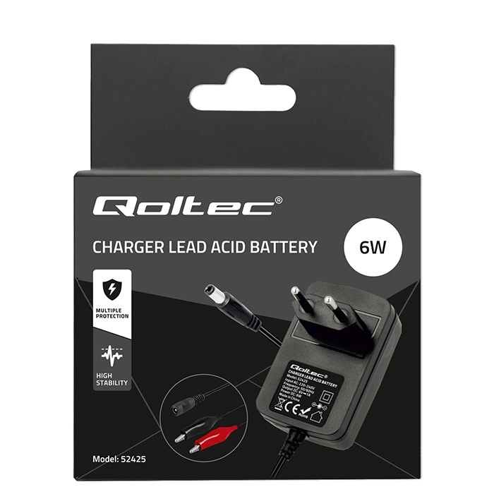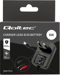 El cargador automático Qoltec ofrece carga controlada por microprocesador para garantizar una larga vida útil de sus baterías. Este cargador universal es compatible con baterías de plomo-ácido tipo AGM, GEL y STD, lo que permite un manejo sin complicaciones y eficiente.