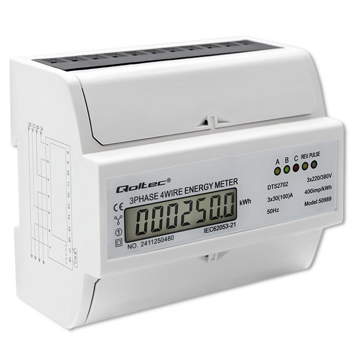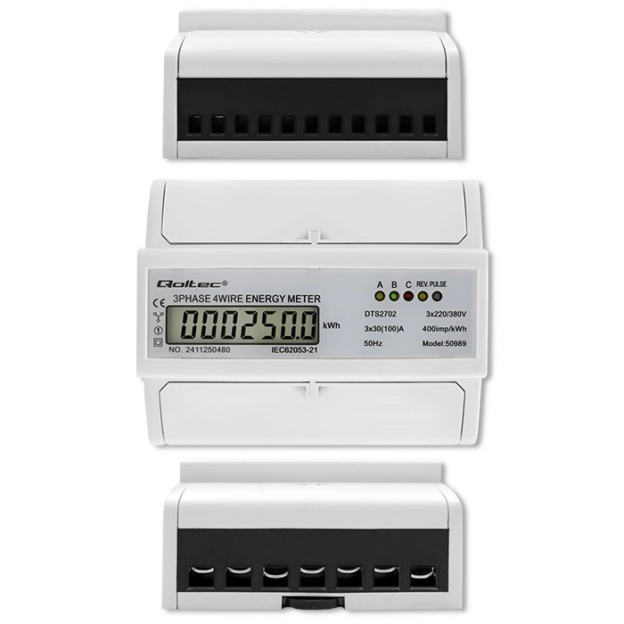 El contador electrónico trifásico bidireccional de la marca Qoltec está diseñado para un control eficiente del consumo de energía con un uso sencillo. Sus dimensiones compactas y su fácil instalación lo convierten en una opción ideal tanto para uso doméstico como industrial. La pantalla LCD proporciona datos precisos sobre el consumo, lo que facilita la gestión eficiente de los costes energéticos.