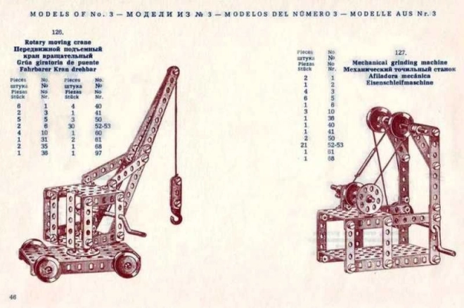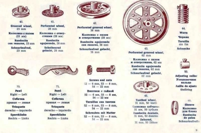 Incluye un manual de 94 páginas con instrucciones ilustradas de estilo de época. Las instrucciones incorporan textos originales en inglés, alemán, español y ruso, y están concebidas para los sets MERKUR classic C03, C04 y C05.