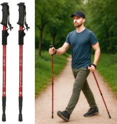 Los bastones de trekking plegables para Nordic Walking en color rojo son una opción ideal para los amantes del senderismo. Fabricados en aluminio resistente, ofrecen estabilidad total y un agarre ergonómico y cómodo.