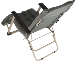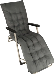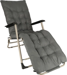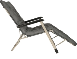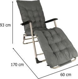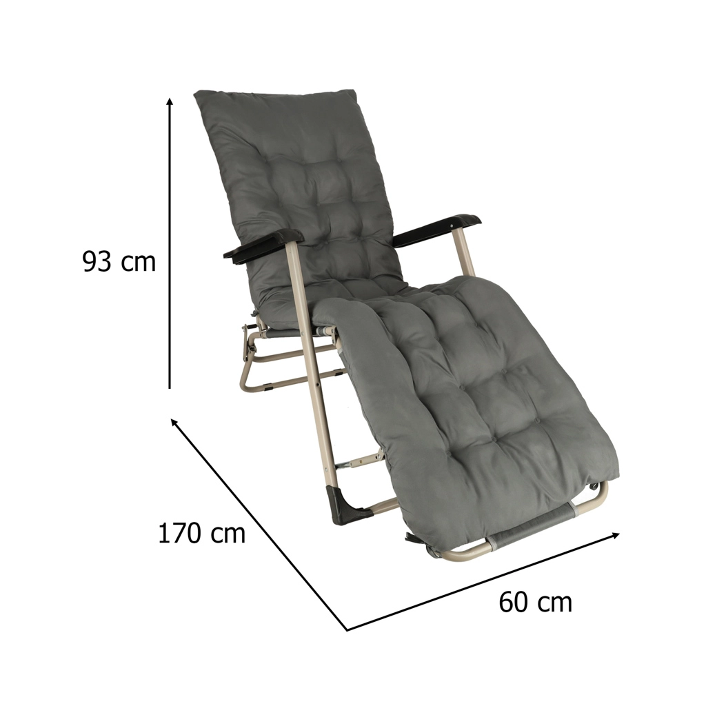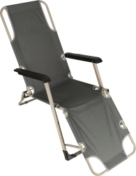 La tumbona está fabricada con una estructura metálica resistente y tapizado de poliéster Oxford 100%. Se pliega fácilmente y, gracias a las dos posiciones de reclinado, es ideal para relajarse y tomar el sol.