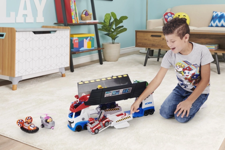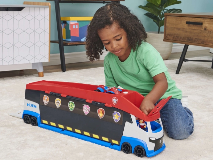 El enorme transportador inspirado en la popular serie PAW PATROL encantará a todos los pequeños rescatistas. Gracias a los paneles laterales abatibles y a las rampas, el camión se convierte en un taller móvil y centro de mando. Al pulsar el botón con la huella se activan sonidos realistas de motor, bocina y marcha atrás, que intensifican aún más la experiencia de juego.