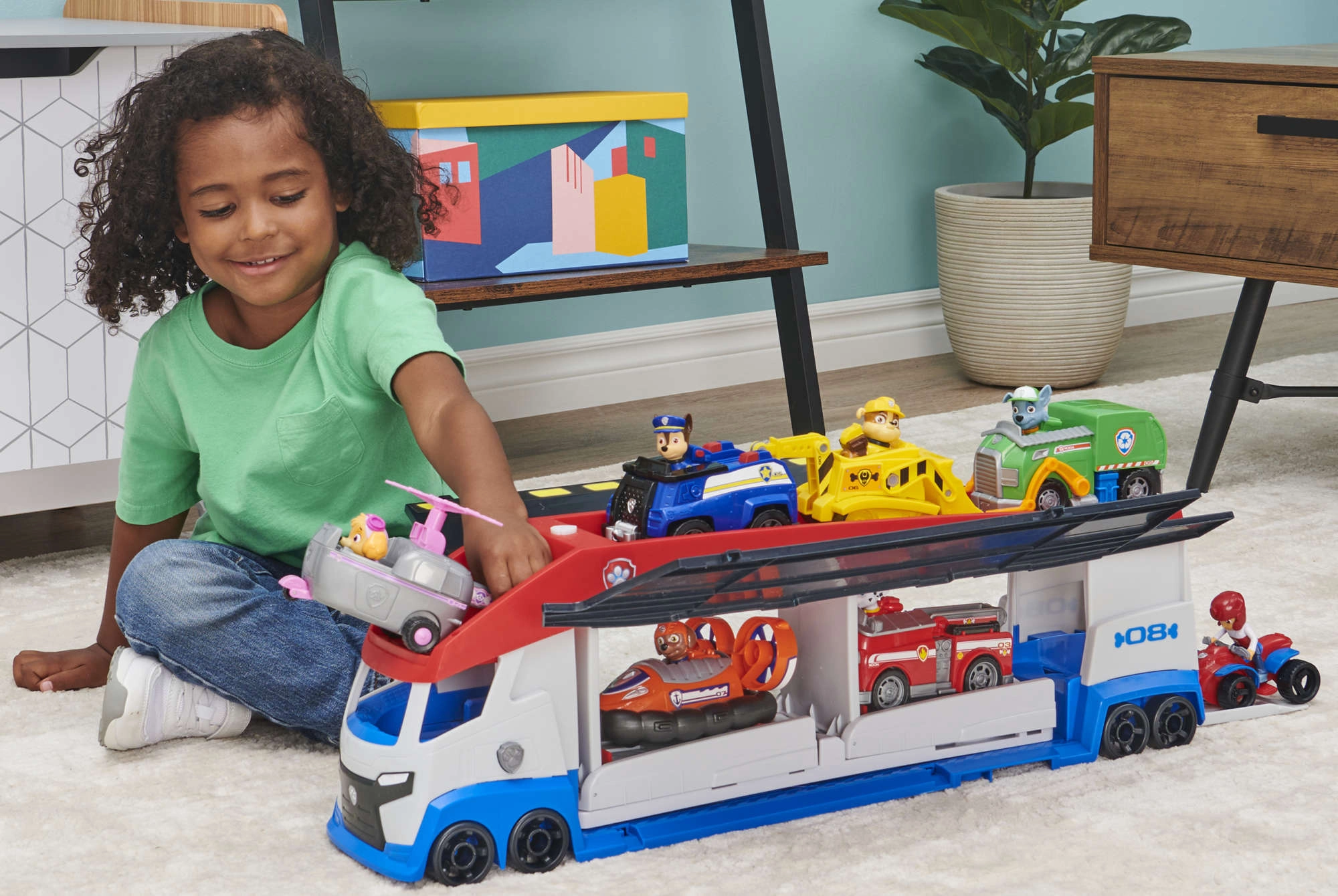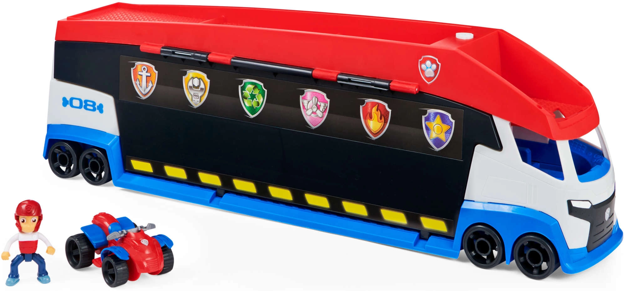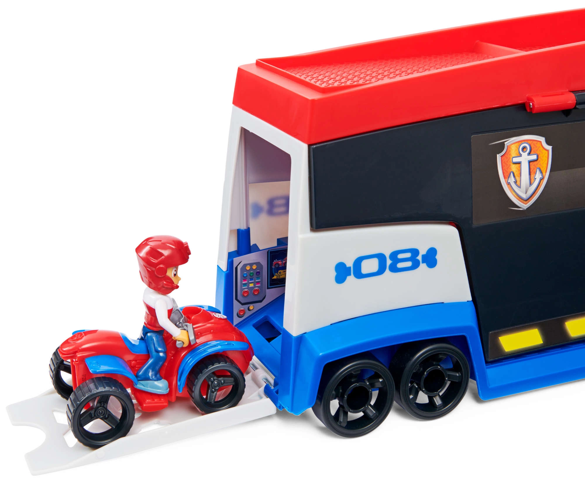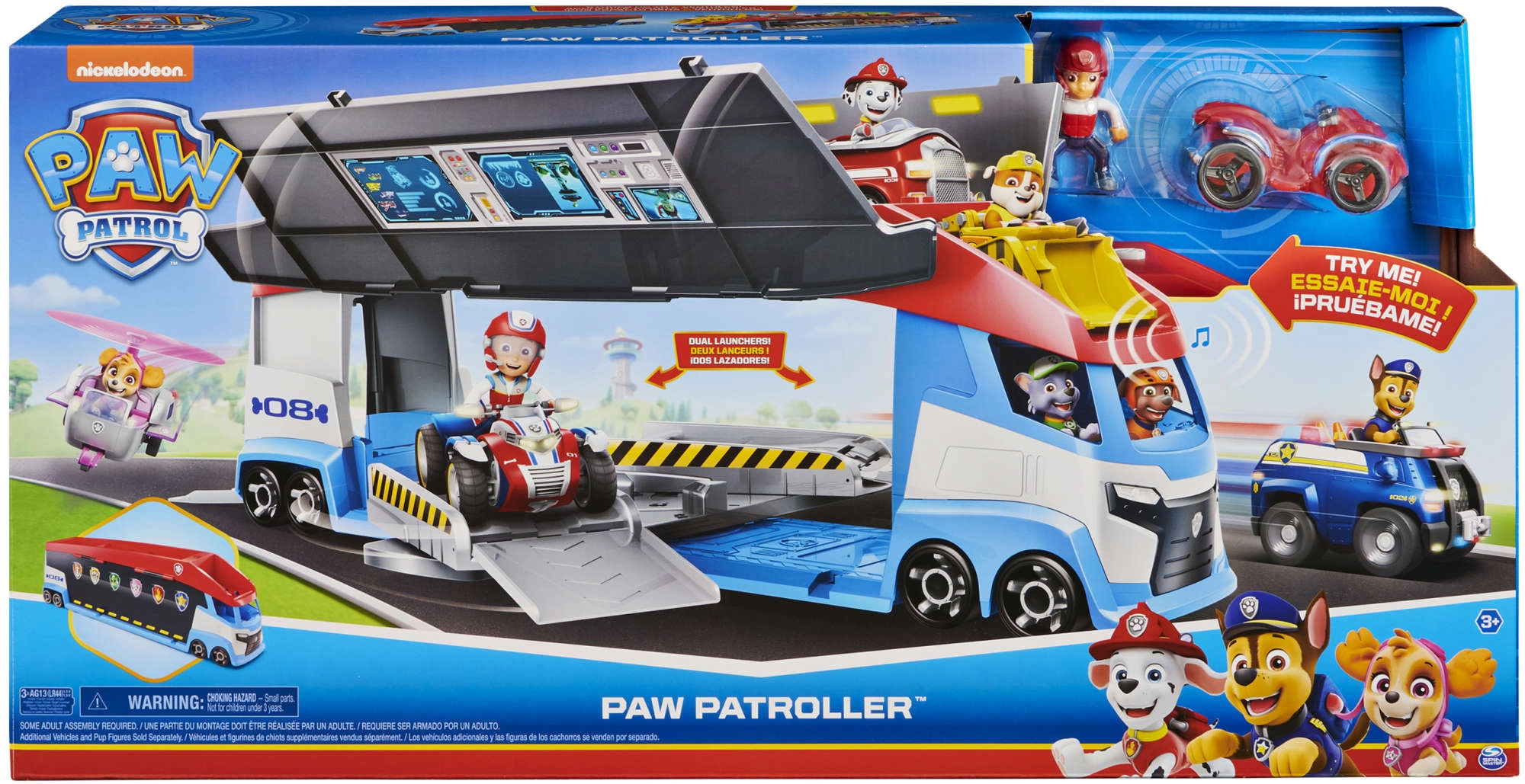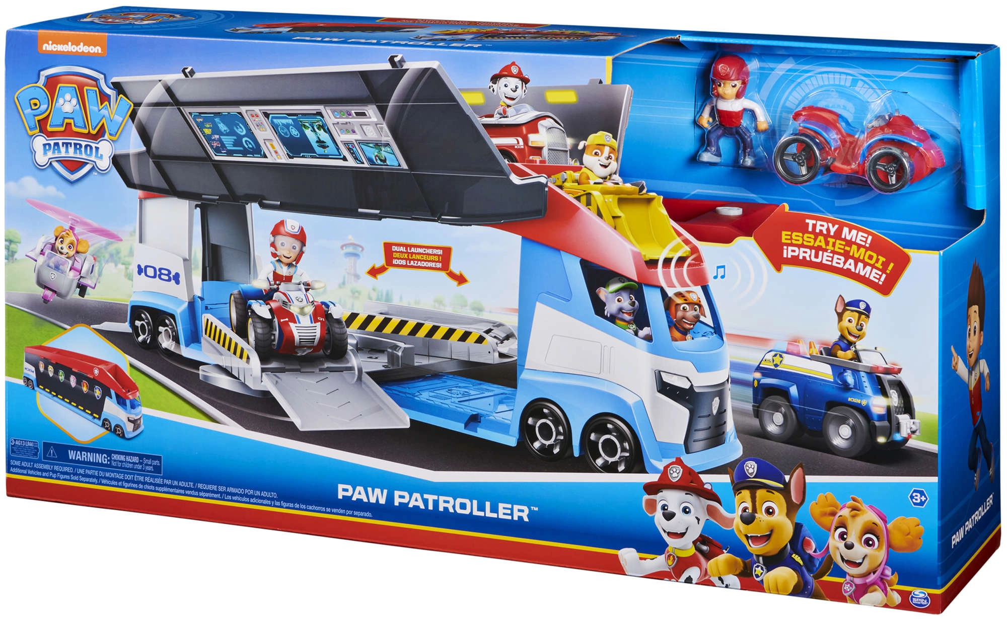 El Patrullero transporta fácilmente hasta 6 vehículos (compatible con los coches estándar de PAW PATROL), dispone de 2 lanzadores para un arranque rápido y puertas laterales elevables para una entrada fluida. Con la figura de Ryder y su quad incluidos, los niños pueden iniciar la misión de inmediato.