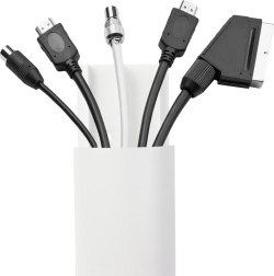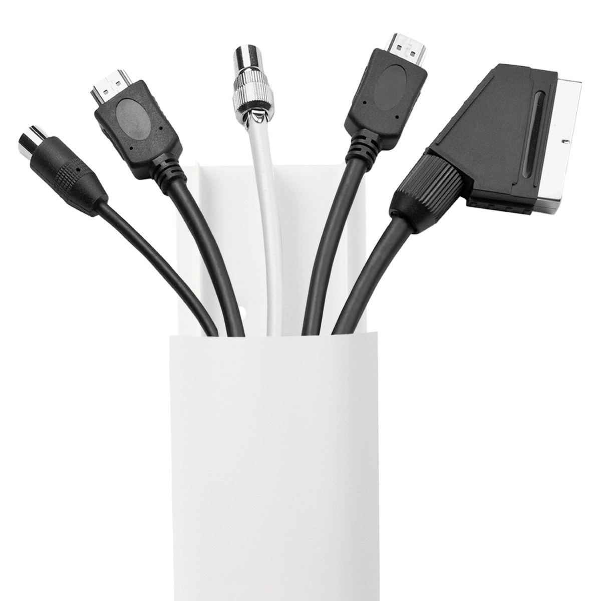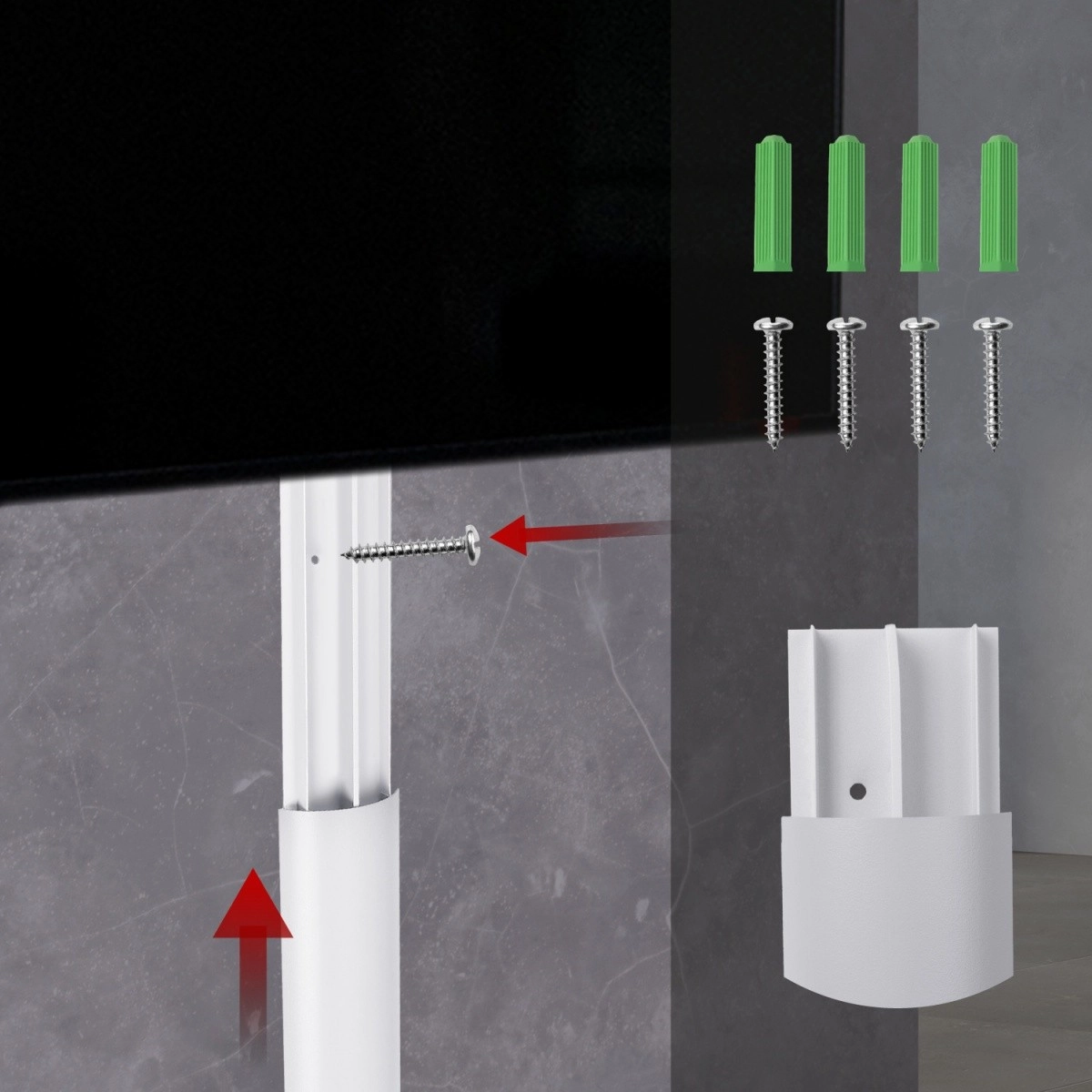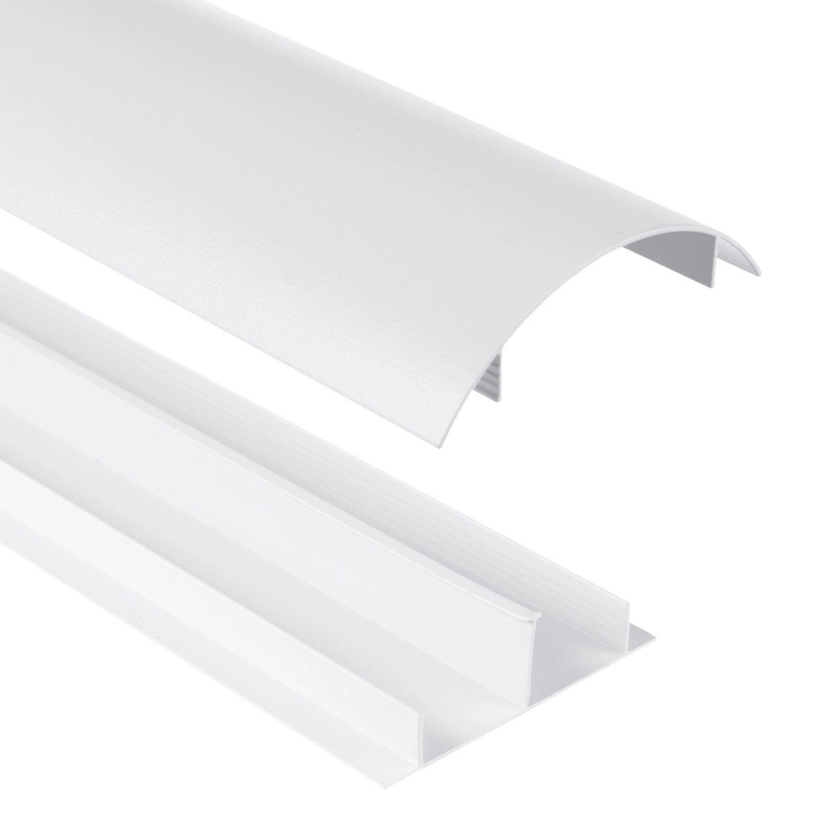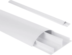 La canaleta es de dos piezas: consta de una base de montaje y una tapa de cobertura, lo que permite un acceso rápido y fácil a los cables para su sustitución o mantenimiento. Las opciones de instalación incluyen cinta autoadhesiva para una fijación rápida y sencilla en superficies lisas, o el uso de tornillos y tacos de anclaje para mayor estabilidad.