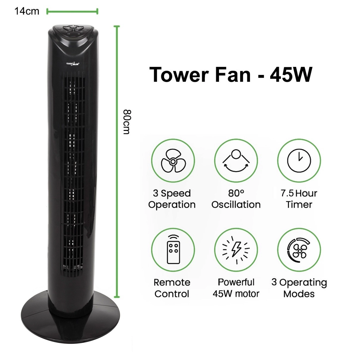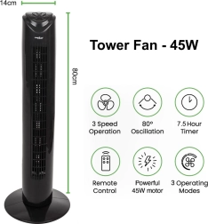La construcción moderna y estable con una altura de 82 cm permite colocar el ventilador tanto en el hogar como en la oficina sin ocupar mucho espacio. La base ancha garantiza la estabilidad del dispositivo.