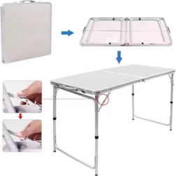 Esta mesa está fabricada en aluminio y MDF recubierto de PVC, lo que garantiza resistencia a las inclemencias del tiempo, fácil mantenimiento y una larga vida útil. Adecuada para actividades al aire libre, proporciona comodidad y estabilidad para 4–6 personas.