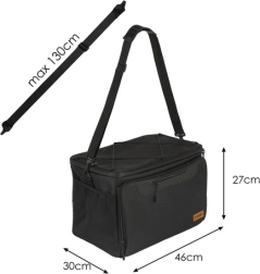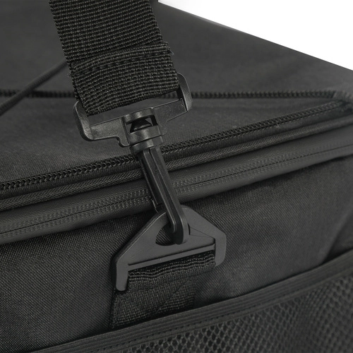 Los parámetros técnicos de la bolsa incluyen unas dimensiones de 46 × 27 × 30 cm y su color negro. La superficie exterior está hecha de tejido Oxford, mientras que el interior combina lámina de aluminio con tejido Oxford.