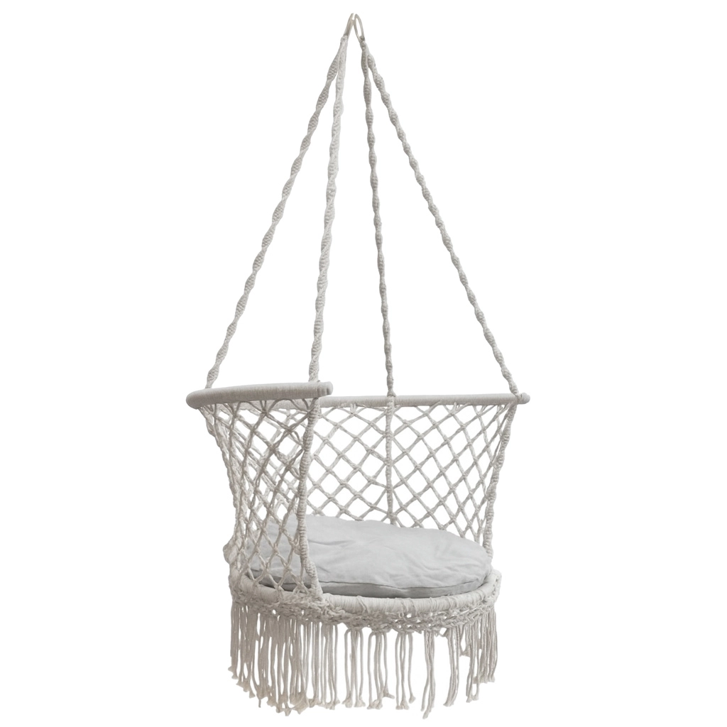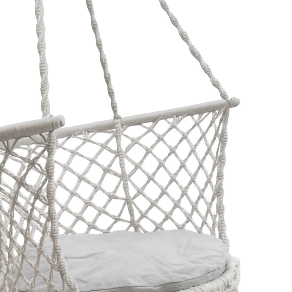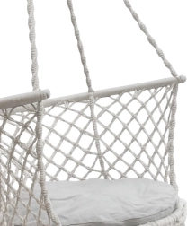 El asiento colgante gris con estructura en forma de nido transformará tu rincón de jardín en un lugar tranquilo para descansar. Gracias al cojín incluido, podrás apoyar cómodamente la espalda en el aro metálico. El columpio es estable y permite sentarse tanto en posición recta como cómodamente en posición de loto.