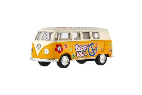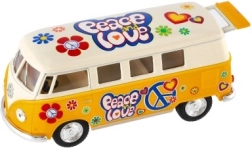 Sumérgete en el mundo de los años 60 con este fielmente elaborado modelo de autobús Volkswagen, ideal tanto para pequeños coleccionistas como para entusiastas del juego. Este modelo está fabricado con metal y plástico de calidad y ofrece una estructura sólida junto con un encanto histórico. El juguete es apto para niños a partir de 3 años.