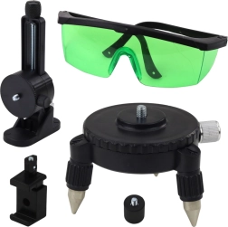 El paquete incluye numerosos accesorios de montaje, como soportes, dos baterías, mando a distancia, plataforma elevadora y un maletín de transporte rígido con espuma amortiguadora. Elección perfecta para alicatado, montaje de muebles, marcado de niveles en escaleras, estructuras de techo y decoración de paredes.