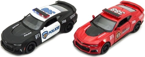 Elige entre un coche de policía lleno de acción y un valiente coche de bomberos; ambas versiones con emblemas e impresiones auténticas para un juego aún más realista.