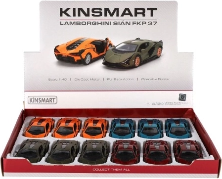 Las puertas abatibles y el mecanismo de retroceso convierten al Lamborghini Sián FKP 37 en un gran juguete para los más pequeños.