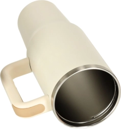 Esta taza térmica es una elección ideal para la hidratación diaria. La gran capacidad de 1,2 litros significa que siempre tendrás suficiente líquido a mano, estés donde estés. Gracias a su estructura de acero y doble pared, mantiene la temperatura de las bebidas durante mucho tiempo.