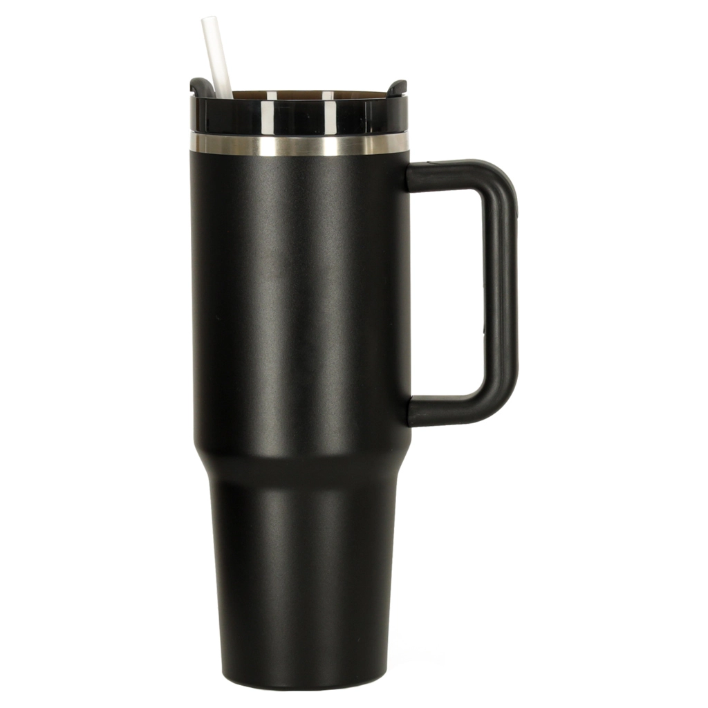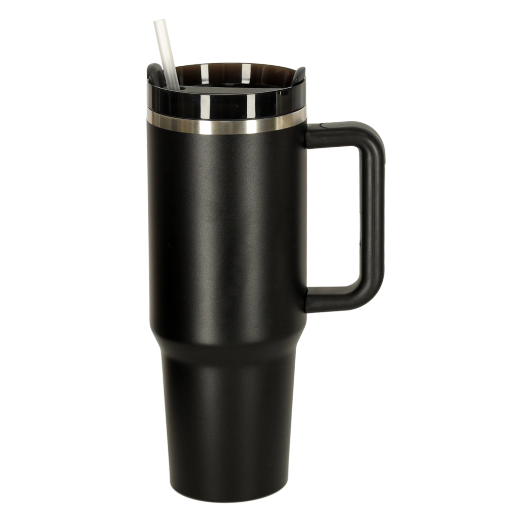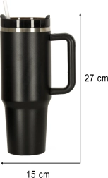 Vaso térmico de gran capacidad (1,2 l) que mantiene las bebidas calientes y frías durante mucho tiempo gracias al aislamiento de doble pared. Incluye asa práctica para un agarre seguro, tapa con junta y apertura para pajita para beber cómodamente en movimiento. Ideal para el coche, la oficina, el entrenamiento y las excursiones.