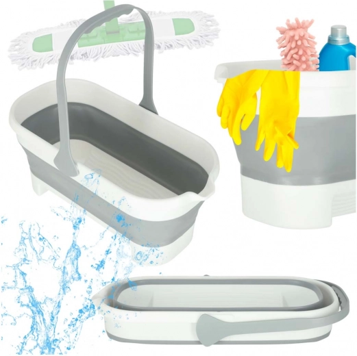 Funcionalmente mejorado cubo plegable para fregona, que facilita la limpieza de tu hogar gracias a su diseño compacto y asa práctica para un transporte sencillo.