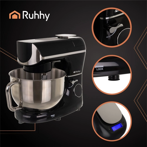 Descubra el inteligente robot de cocina RUHHY, que combina mezclar, amasar, batir, calentamiento y pesaje en un solo equipo. Gracias al bol calefactado (25–45 °C) las masas fermentan más rápido y de forma uniforme; la báscula integrada, el temporizador y 11 velocidades garantizan resultados precisos sin adivinanzas. La gran pantalla digital, el funcionamiento silencioso (76 dB) y la posibilidad de lavar los accesorios en el lavavajillas hacen de este robot un ayudante fiable para el horneado y la cocina diaria.