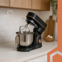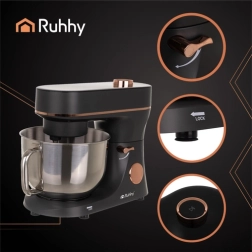 Descubra la comodidad y precisión al hornear y cocinar con el robot de cocina RUHHY con bol calefactable. Potencia de hasta 2000 W, 11 velocidades y calentamiento inteligente garantizan un levado perfecto de la masa y una excelente integración de los ingredientes. Gancho, batidor plano y globo batidor cubren desde masas densas hasta cremas ligeras. Pantalla táctil, temporizador, tapa antisalpicaduras y bol con asa aseguran un uso cómodo y limpio. Los materiales libres de BPA y las protecciones de seguridad hacen de RUHHY un ayudante fiable para cualquier cocina.