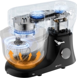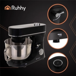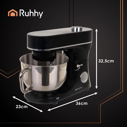 El moderno robot planetario RUHHY con bol calefactado de 6,2 l facilita el amasado de masas, el batido de cremas y la preparación de mezclas finas. 11 velocidades, pantalla táctil y 3 accesorios garantizan un ajuste preciso para cada receta. Su potente motor de 2000 W, la estructura estable y el manejo sencillo hacen de este ayudante la elección ideal para la repostería casera y la cocina diaria.