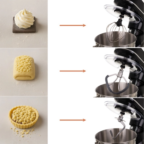 En el paquete encontrarás 3 accesorios (gancho, pala, batidor de globo) para una amplia gama de tareas: desde masas levadas pesadas hasta cremas aireadas y merengues. Las patas antideslizantes garantizan la estabilidad, algunas piezas son aptas para lavavajillas y el código QR con recetas te inspirará con nuevas ideas en la cocina.