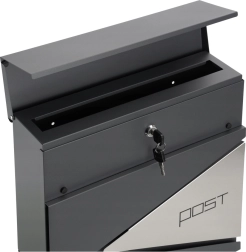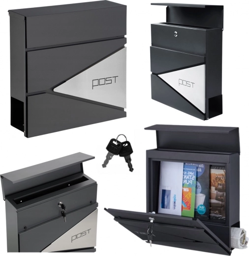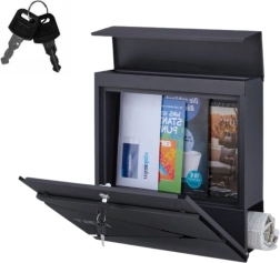 Elegante buzón en color antracita que combina un aspecto moderno con detalles prácticos. Está fabricado en acero galvanizado de alta calidad con recubrimiento en polvo, por lo que es resistente a la corrosión, a la intemperie y a daños mecánicos. Admite formato A4, cuenta con una ranura ancha de 3,5 cm y un soporte para periódicos independiente en la parte inferior. El cierre seguro está garantizado por una cerradura con dos llaves.