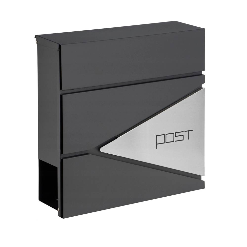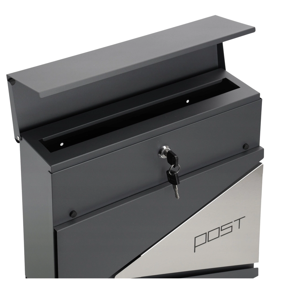Este buzón antracita para cartas se distingue por su diseño limpio, realzado con recortes geométricos y la inscripción minimalista “POST”. Gracias a los materiales duraderos y al recubrimiento en polvo, es ideal para un uso exterior prolongado.