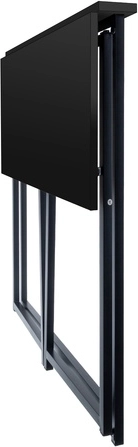 Elegante mesa de estilo loft con marco metálico y tablero MDF negro de 15 mm de grosor, diseñada para el trabajo y estudio diarios. Gracias a su bajo peso de 6,75 kg, se transporta fácilmente y aun así ofrece una construcción sólida y fiable con estabilidad de hasta 30 kg.