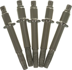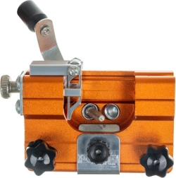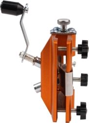 Los canales de guía y las perillas de ajuste mantienen el ángulo seleccionado, de modo que todos los dientes se afilan de manera uniforme y la sierra corta con mayor facilidad.