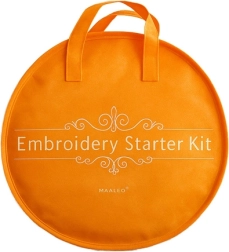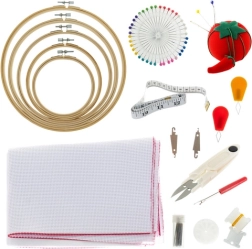 El set es ideal como regalo y para equipar tu taller en casa. El práctico bolso de almacenamiento mantiene todo en su lugar, y los bastidores de bambú de diferentes tamaños facilitan el trabajo en motivos pequeños y grandes.