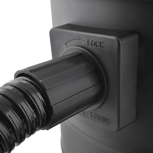 Para una mayor versatilidad, el aspirador está equipado con función de soplado: basta con conectar la manguera a la salida superior y podrás soplar hojas, polvo y suciedad más grande de aceras o del garaje. El refuerzo metálico interno de la manguera de aspiración protege contra daños y atascos por partículas finas, aumentando la seguridad y la vida útil del aparato.