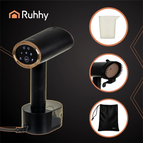 Facilita el cuidado de tu ropa con el vaporizador RUHHY, compacto y elegante. Su potente potencia de 2000 W y la distribución uniforme del vapor a través de 13 orificios de teflón garantizan resultados rápidos sin tabla de planchar. Tres niveles de vapor (bajo/medio/alto) permiten un uso seguro desde la seda delicada hasta el algodón y el lino.