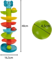 Deja que los niños descubran la alegría del movimiento y el sonido con esta colorida torre de bolas y su tobogán en espiral. Coloca la bolita en la parte superior y observa cómo desciende con un alegre traqueteo: un juego interactivo simple pero altamente entretenido que los mantendrá ocupados durante mucho tiempo.