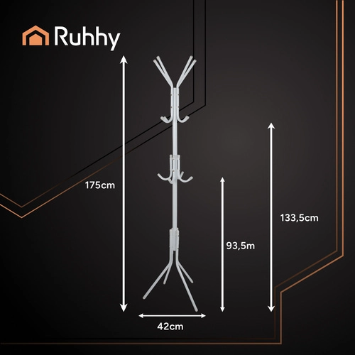 El perchero RUHHY combina funcionalidad, movilidad y un diseño limpio. Gracias a sus tres niveles de altura, guardarás cómodamente abrigos, chaquetas, bufandas, bolsos y sudaderas, incluso sin presilla. Las puntas protectoras en los ganchos y las patas protegen las prendas y el suelo, mientras que la estructura ligera pero resistente garantiza una estabilidad fiable.
