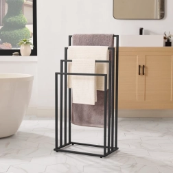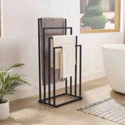 Mantén el baño perfectamente organizado gracias al toallero con cuatro niveles para colgar por separado. La estructura abierta garantiza una mejor circulación de aire y, por tanto, un secado más rápido de toallas, bañadores o ropa. Su estética minimalista en negro mate encaja a la perfección en interiores modernos.