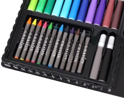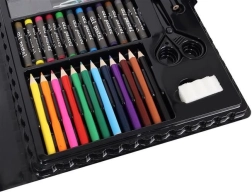 El set incluye un total de 86 piezas, entre ellas lápices de colores, rotuladores, ceras y pasteles al óleo para una creatividad sin límites.