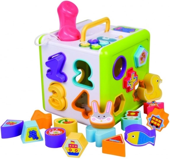 Este encajable es ideal para los más pequeños gracias a sus colores vivos y a las distintas formas para insertar. En cada lado del cubo hay aberturas destinadas a encajar formas, letras y números, lo que motiva a los niños a aprender y a descubrir el mundo de forma lúdica.