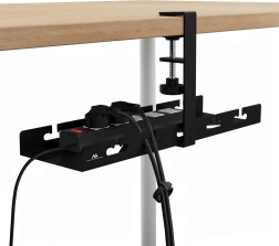 El organizador de cables bajo escritorio es una solución inteligente para quien desea un cableado limpio y seguro sin enredos bajo los pies. Gracias a la fijación por abrazadera (C-clamp) se monta al borde del tablero en segundos y sin un solo taladro. Las ranuras y pasacables integrados facilitan el guiado de los conductores y la colocación de una regleta/enchufe múltiple justo bajo el tablero.
