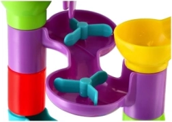 Esta pista de canicas de plástico con 55 piezas permite a los niños construir recorridos variados y comprobar qué canica es la más rápida. Gracias a los distintos obstáculos y elementos giratorios, cada bajada es diferente y llena de emoción. El set fomenta la creatividad, la paciencia y la coordinación mano-ojo.