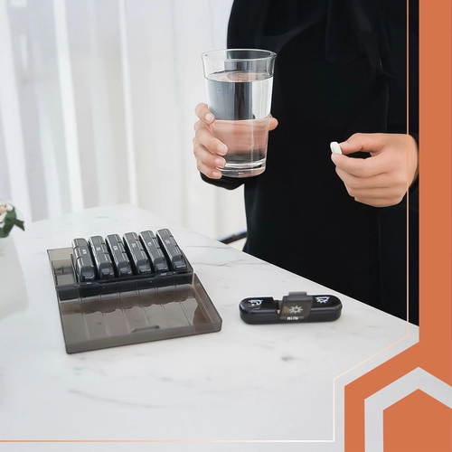 Cada día en un módulo independiente con tres compartimentos (mañana/mediodía/noche). Llévate solo lo que necesitas en ese momento: a casa, al trabajo o de viaje.