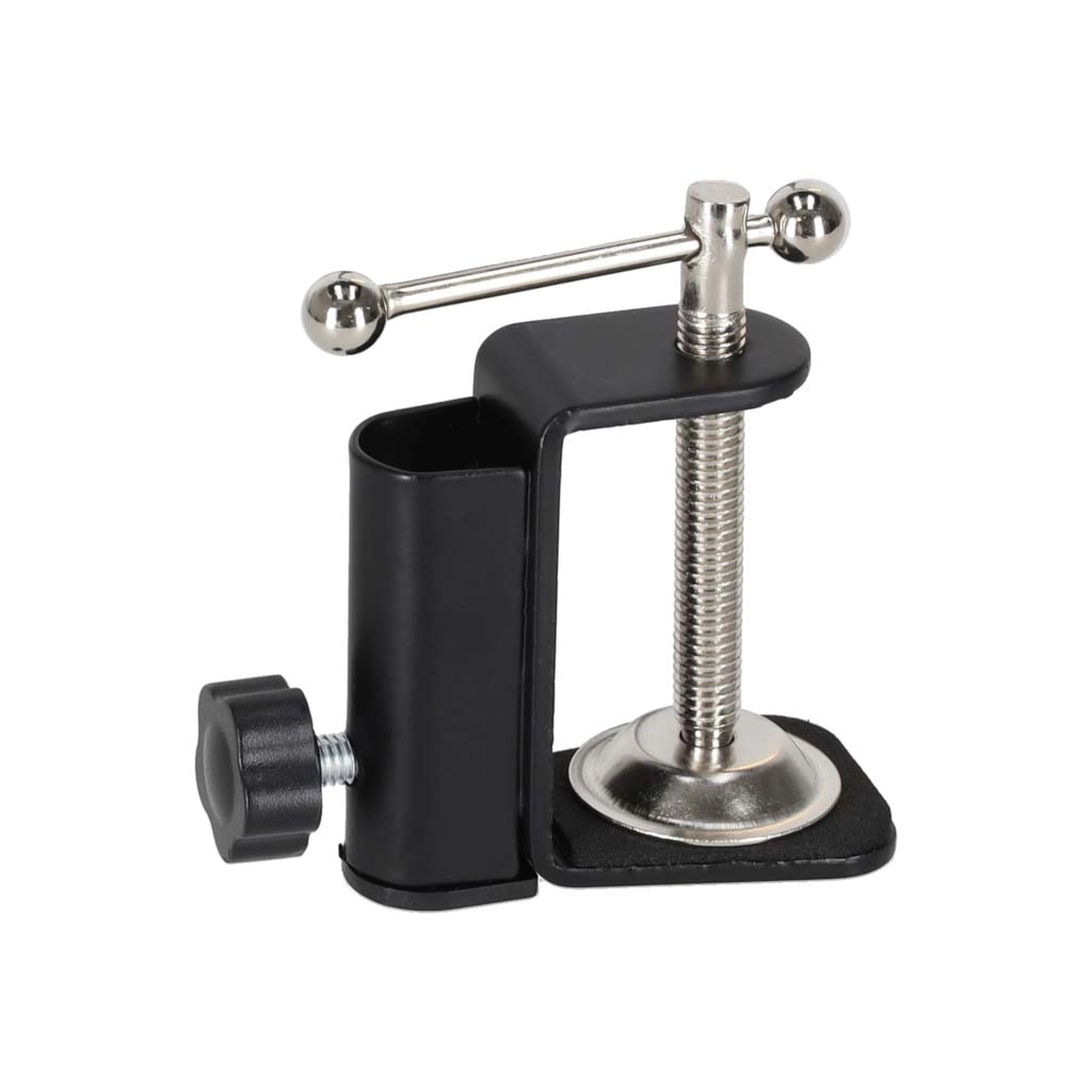 Elija una base redonda estable para moverla fácilmente, o una abrazadera en C que ahorra espacio para fijación firme al tablero de la mesa.