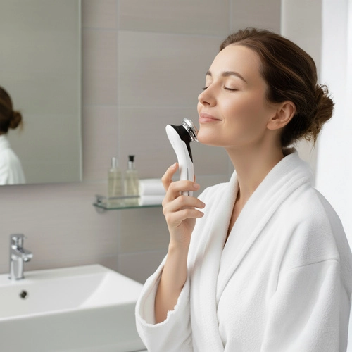SOULIMA 5 en 1 es un dispositivo compacto, recargable y fácil de usar que ayuda a mejorar la textura de la piel, potenciar la absorción de la cosmética y realzar visualmente los contornos faciales. El modo de calentamiento favorece la absorción más profunda de sérums, mientras que el enfriamiento ayuda a calmar la piel, cerrar poros y reducir la hinchazón. La luz LED en longitudes de onda roja y azul aborda distintas necesidades de la piel.