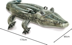 El divertido caimán inflable INTEX es ideal para la piscina, el lago y las vacaciones. Ofrece 2 cámaras de aire para mayor estabilidad, 2 asas resistentes para un agarre seguro y material duradero con parche incluido. Gracias a su superficie plana y estable, los niños pueden sentarse y tumbarse con seguridad. Ligero, compacto y con aspecto realista, con dimensiones de 170 × 86 cm.