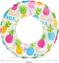 Ligero y resistente flotador inflable INTEX con un diámetro de 61 cm, ideal para jugar en el agua y dar los primeros pasos en el aprendizaje de la natación. Fabricado en PVC resistente (0,18 mm), con motivos coloridos y agarre cómodo. El diseño se selecciona aleatoriamente.