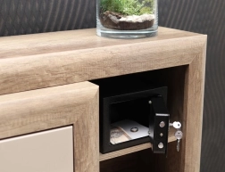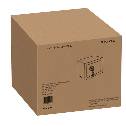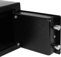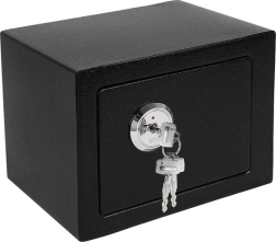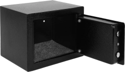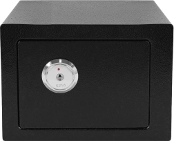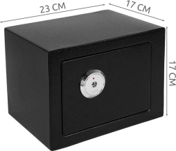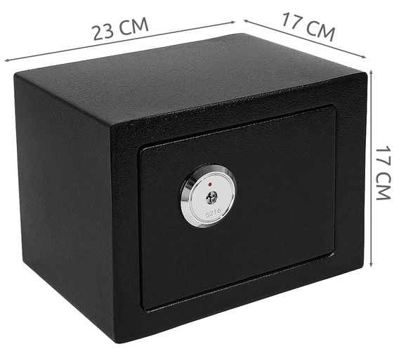La caja fuerte tiene dimensiones suficientes para alojar documentos en formato A5 y otros objetos pequeños. Está equipada con puerta resistente y dimensiones compactas, lo que asegura un peso reducido y un manejo sencillo.