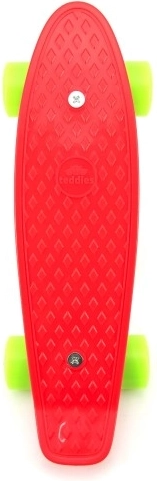 La tabla roja en combinación con las ruedas verdes aporta un aspecto llamativo que encantará a los niños. El pennyboard está diseñado para soportar el uso diario, el aprendizaje de habilidades básicas y desplazamientos cómodos por las aceras.