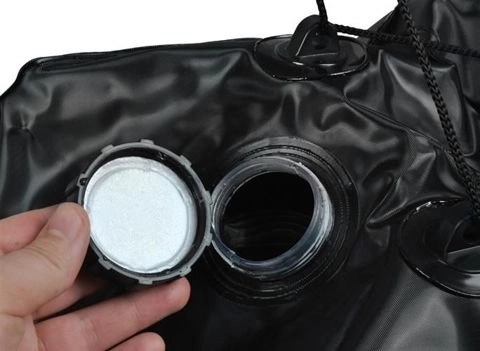 La instalación es rápida: cuelga, llena, deja calentar y abre el flujo de agua tirando suavemente de la boquilla. La manguera transparente y la práctica alcachofa facilitan un enjuague cómodo después del baño, el deporte o al cocinar en el campamento.