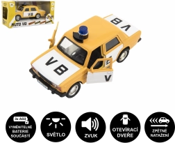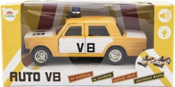 El elegante modelo de coche de policía VB Lada encantará a cualquier pequeño policía. Ofrece mecanismo de retroceso, efectos de luz y sonido, puertas delanteras abatibles y un tamaño compacto de 12 cm. Las pilas 3× AG3 están incluidas en el paquete.