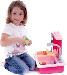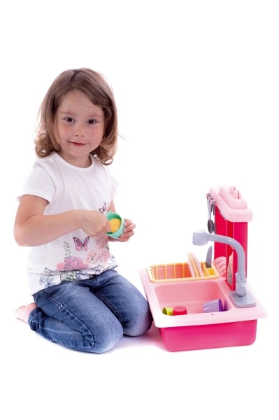 Disfruta de un lavado de platos divertido con este fregadero infantil en color rosa, que incluye un grifo funcional, un depósito de agua y un escurridor desmontable.