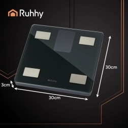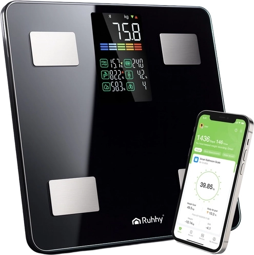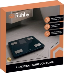La báscula inteligente de baño RUHHY ofrece mediciones precisas de peso de hasta 226 kg y, gracias a la tecnología BIA, realiza un análisis avanzado de la composición corporal. Al vincularla con la app Feelfit en el teléfono verás IMC, porcentaje de grasa, agua corporal, masa muscular y ósea, grasa visceral y otros indicadores, todo claramente en gráficos. La moderna pantalla LCD, el encendido/apagado automático y el resistente vidrio templado la convierten en una gran opción para el hogar y el gimnasio.