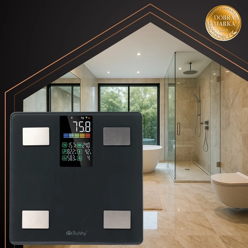 Controla tus objetivos de forma inteligente y cómoda. La báscula analítica RUHHY combina un pesaje preciso con el análisis de impedancia bioeléctrica (BIA), por lo que además de los kilos, monitoriza métricas clave de salud. La aplicación móvil Feelfit guarda las mediciones, muestra tendencias y ayuda a evaluar el progreso a lo largo del tiempo.