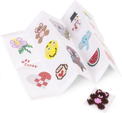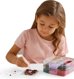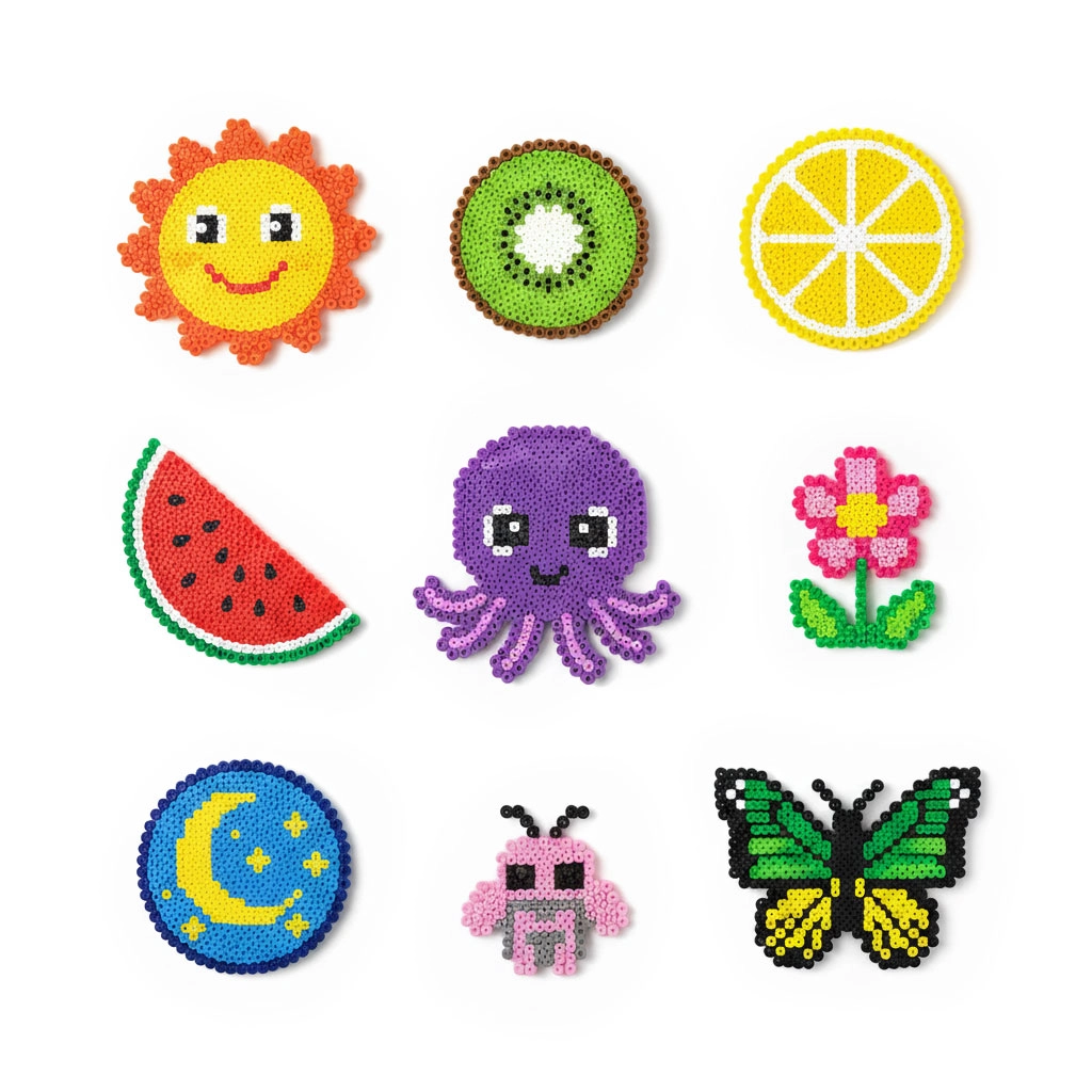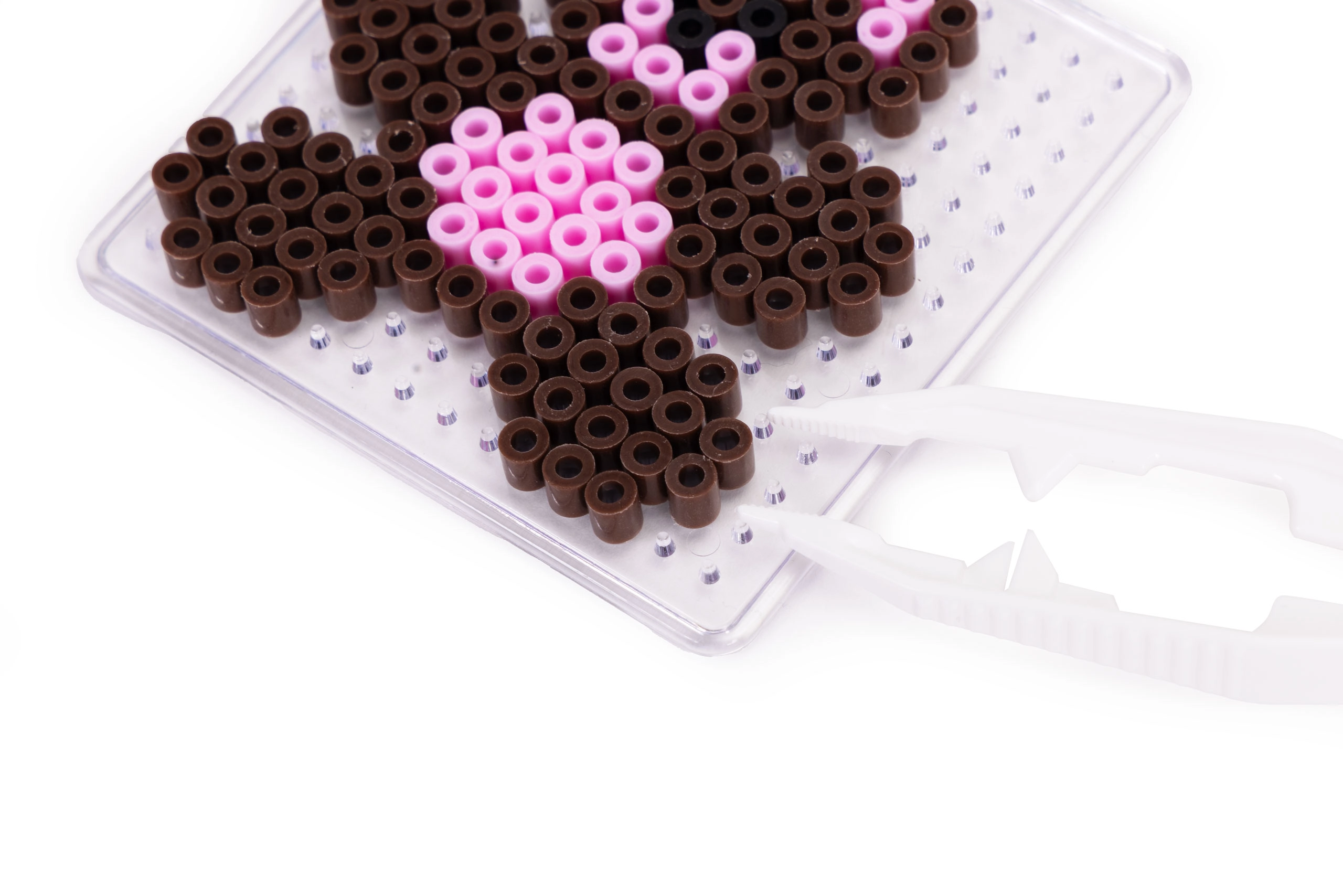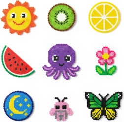 La gran reserva de cuentas en una amplia paleta de colores permite a los niños crear animales, símbolos, adornos e imágenes de “pixel art”, desde motivos sencillos hasta diseños elaborados.